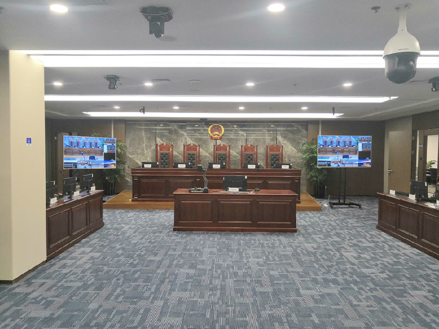 庭审实况信息,即庭审过程的全面音视频记录,是通过布设在庭内的摄影机摄取画面,发言系统采集审理发言音频,并经过选择切换、画面合成等手段,显示在庭内大屏幕显示设备上,或通过传送音视频信号在审理庭外进行显示。